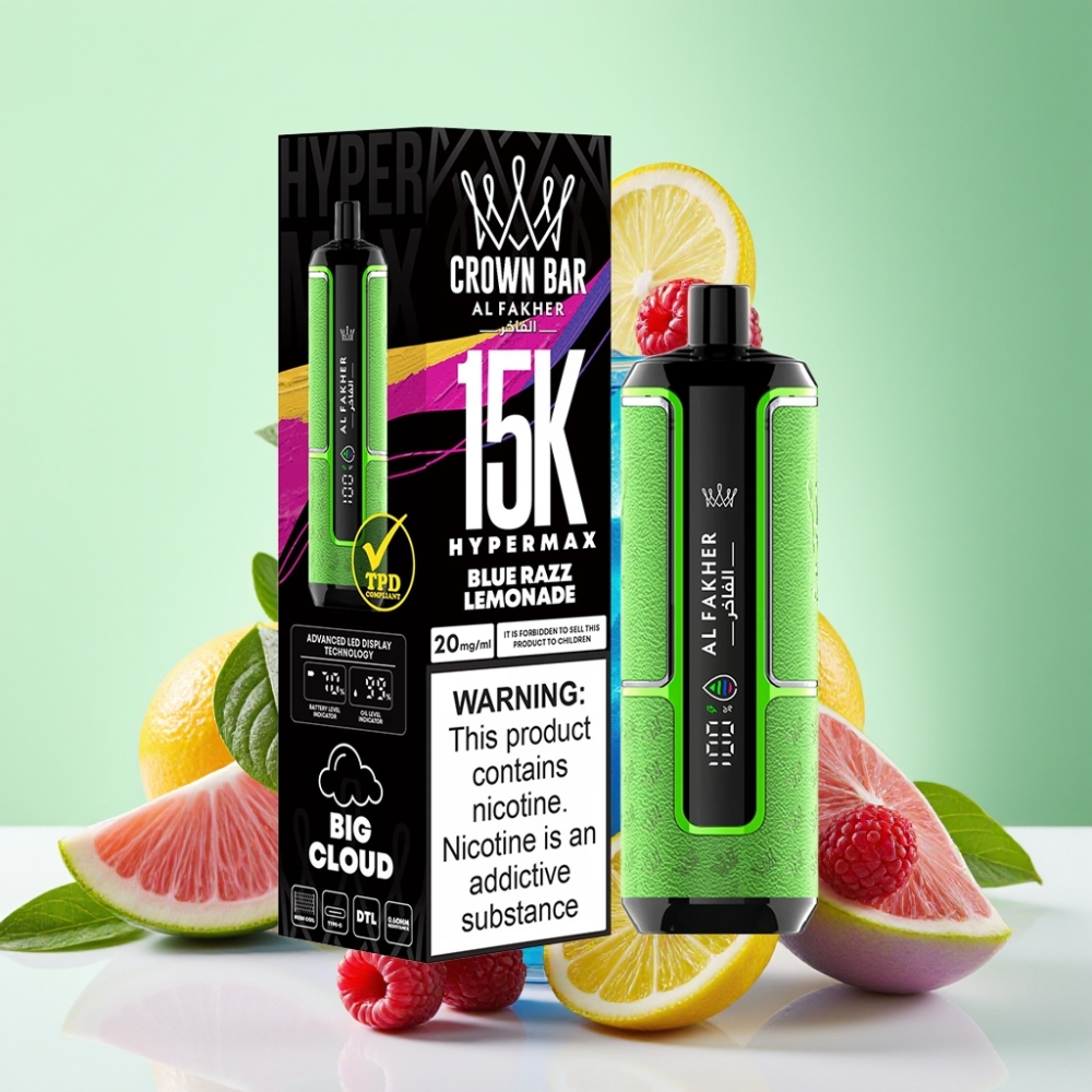 Al Fakher Crown Bar 15K Hypermax Disposable Vape Kit توت أزرق ليمونادة 22مل