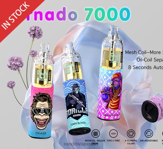 مميزات جهاز راندم تورنادو 7000:- 5% /2% - 14 مل- 7000 نفخة لكل جهاز- التحكم في تدفق الهواء- النوع -c إعادة الشحن- بطارية قابلة للشحن- بطارية مدمجة بقوة 1000 مللي أمبير- 50 طعمًا متاحًا