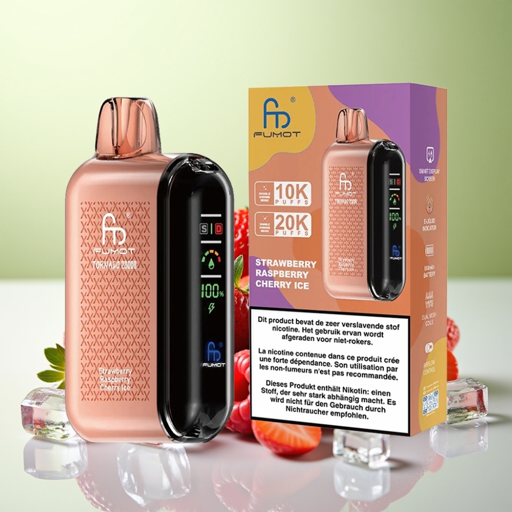 Fumot Tornado 20000 نفخة تبخير قابل للتخلص بنكهة الفراولة التوت الكرز الجليدي مع بطارية 850mAh وشاشة ذكية