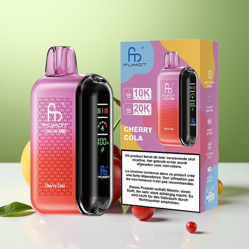 Fumot Tornado 20000 نفخة كرز كولا مع شاشة ذكية ومراقبة تدفق الهواء