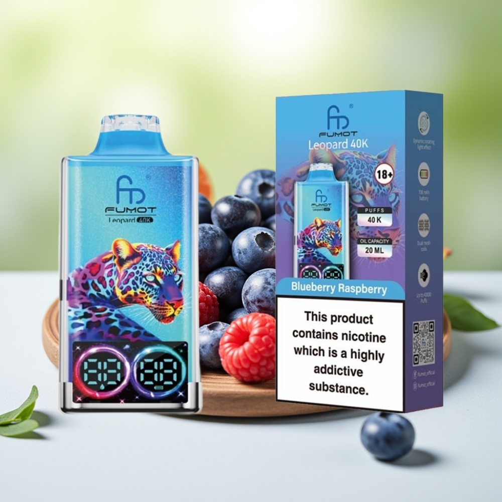 Fumot Leopard 40000 بخاخ قابل للتخلص منه توت أزرق وتوت العُلّيق، مع شاشة رقمية وعمر بطارية 700mAh