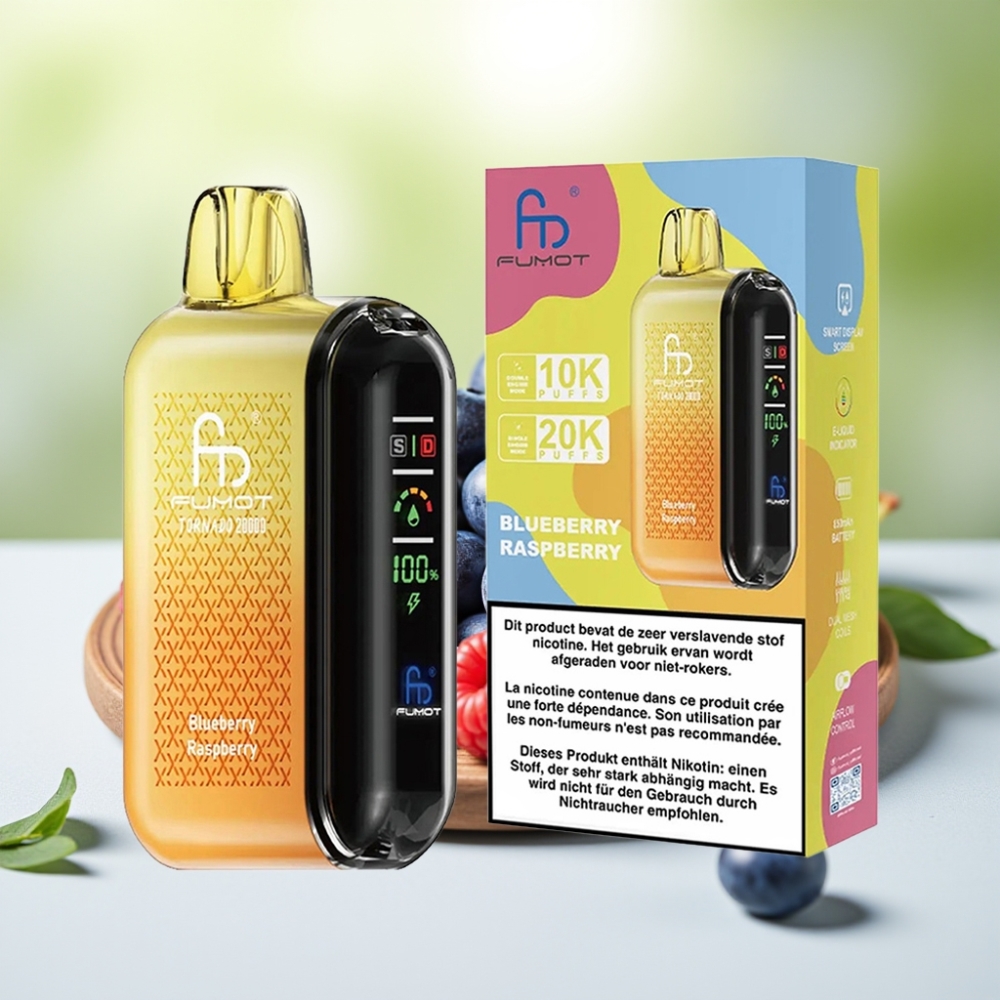 Fumot Tornado 20000 نفخة تبخير قابل للتخلص بنكهة التوت الأزرق والتوت الأحمر مع شاشة ذكية وبطارية قابلة للشحن