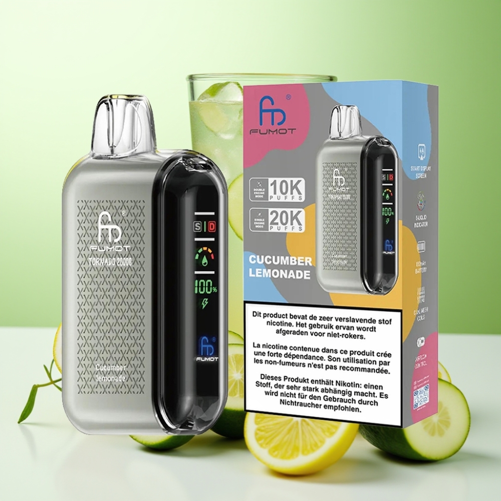 Fumot Tornado 20000 نفخة تبخير قابل للتخلص بنكهة الخيار والليموناضة مع شاشة ذكية