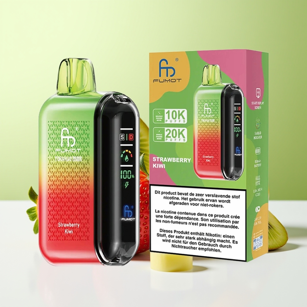 Fumot Tornado 20000 نفخة تبخير قابل للتخلص بنكهة الفراولة والكيوي، بطارية 850 مللي أمبير ساعة، شاشة ذكية