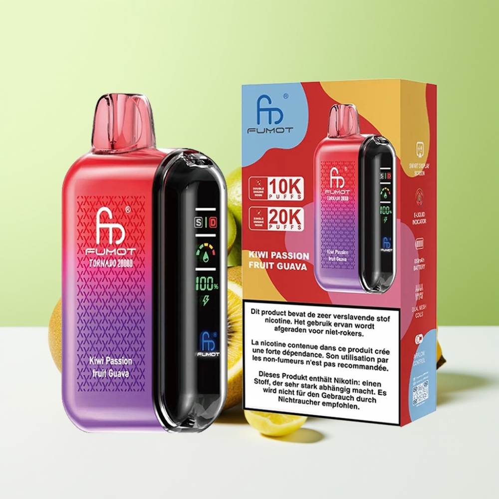 Fumot Tornado 20000 نفخة تبخير قابل للتخلص بنكهة الكيوي والباشن فروت والجوافة مع بطارية قابلة للشحن 850mAh