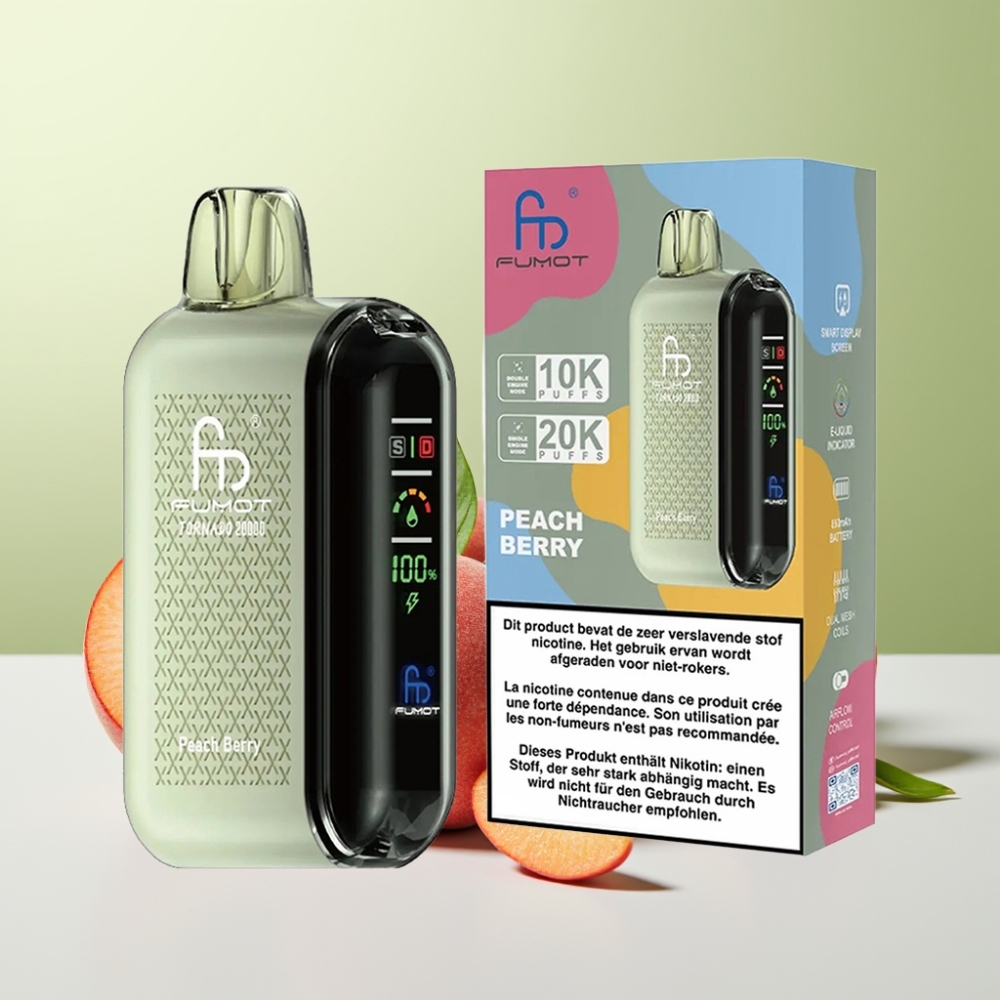 Fumot Tornado 20000 نفخة تبخير قابل للتعبئة بنكهة الخوخ والتوت مع بطارية قابلة لإعادة الشحن 850mAh