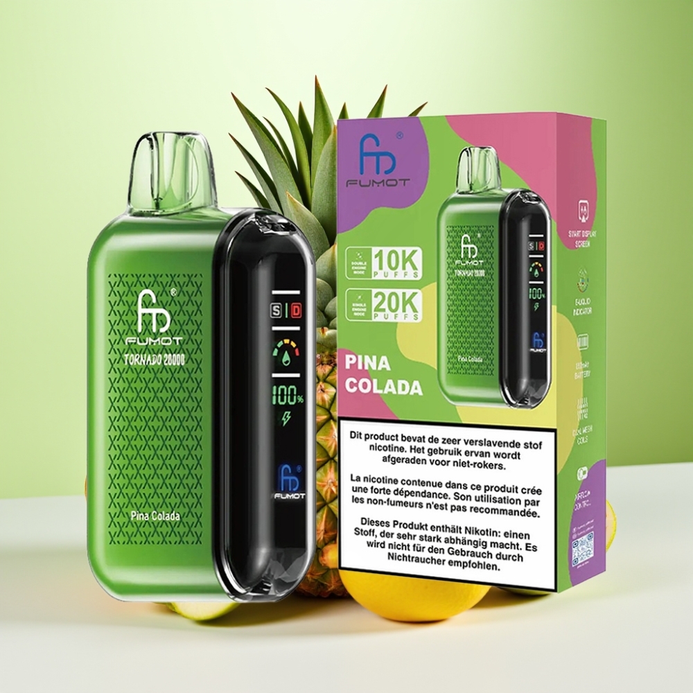 Fumot Tornado 20000 Puffs بخاخ عصير أناناس وجوز الهند قابل لإعادة الشحن وشاشة ذكية
