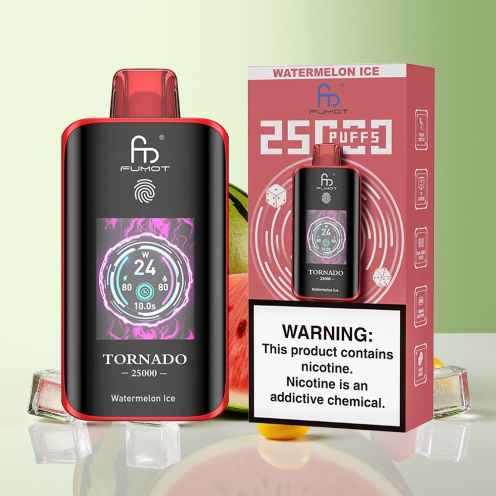 Fumot Tornado 25000 نفخة شاشة عالية الدقة بطارية قابلة لإعادة الشحن بنكهة البطيخ المثلج