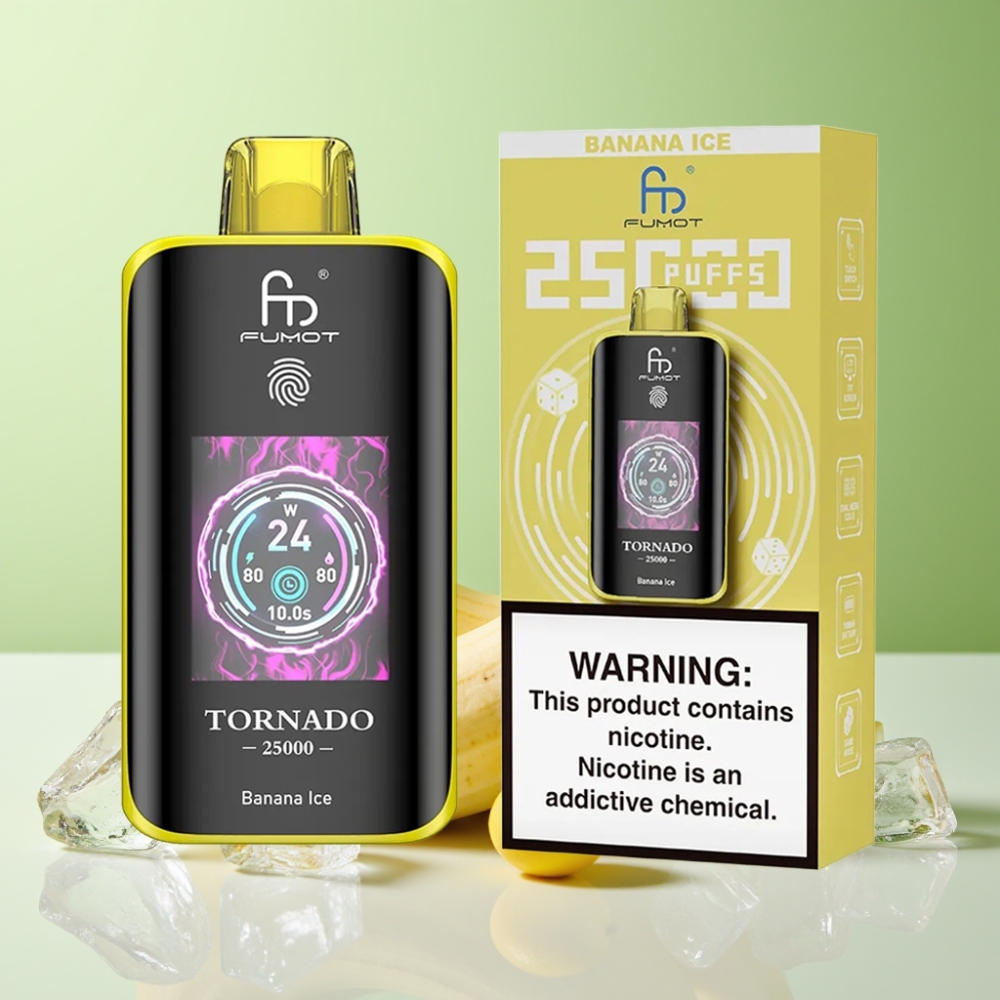 Fumot Tornado 25000 نفخة شاشة عالية الدقة بنكهة الموز الجليدي