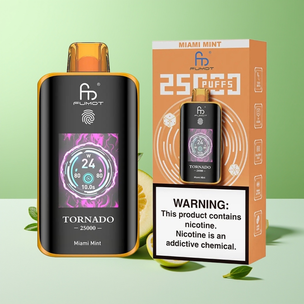 Fumot Tornado 25000 نفخة شاشة عالية الدقة بنكهة ميامي النعناع