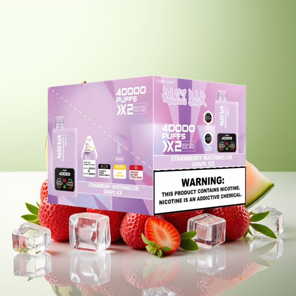 Razz Bar 40000 نفخة ستروبري ووترميلون وعنب آيس شاشة عرض وملف مزدوج 1.0Ω