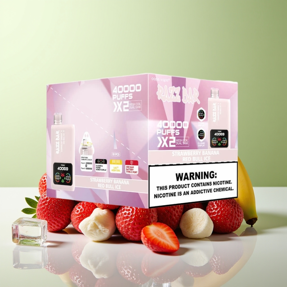 Razz Bar 40000 نفخة فيب قابل للتخلص بشاشة عرض وطعم فراولة موز وريد بول آيس