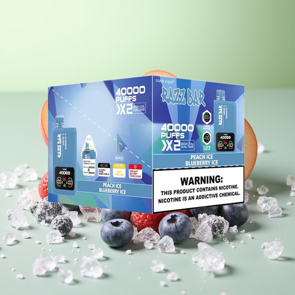 Razz Bar 40000 نفخة فيب قابل للتخلص بنكهة الخوخ الجليدي والتوت الأزرق الجليدي