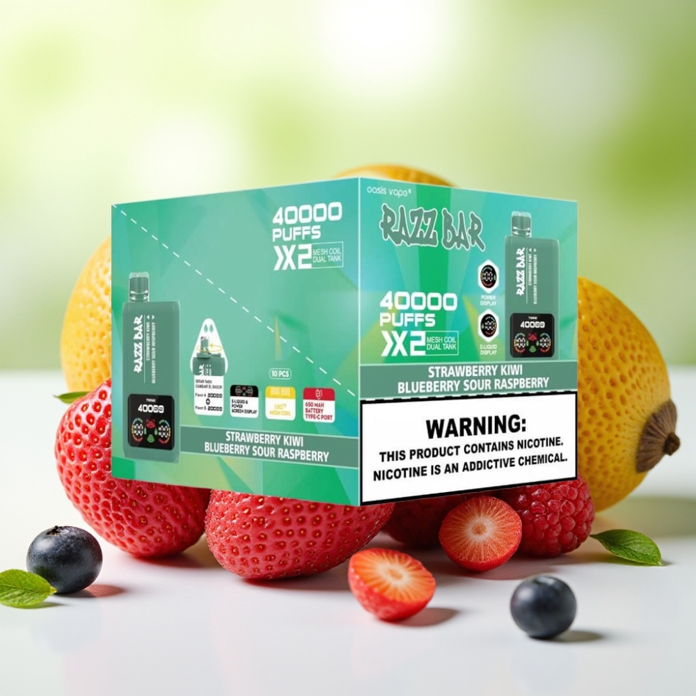 Razz Bar 40000 نفخة فيب قابل للتصريف فراولة كيوي & توت أزرق حامض توت العليق شاشة عرض