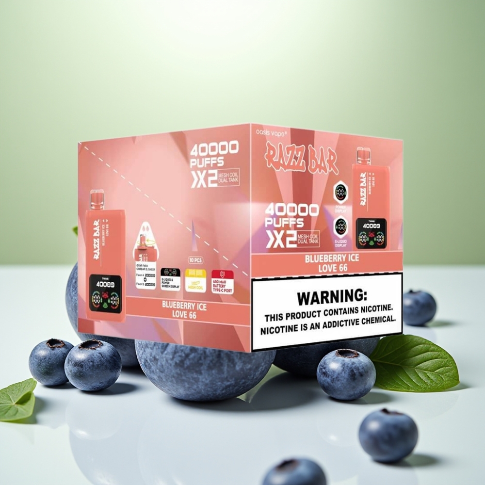 Razz Bar 40000 نفخة جهاز تبخير قابل للتخلص منه توت أزرق جليدي & حب 66 شاشة عرض طاقة