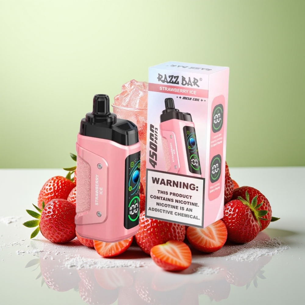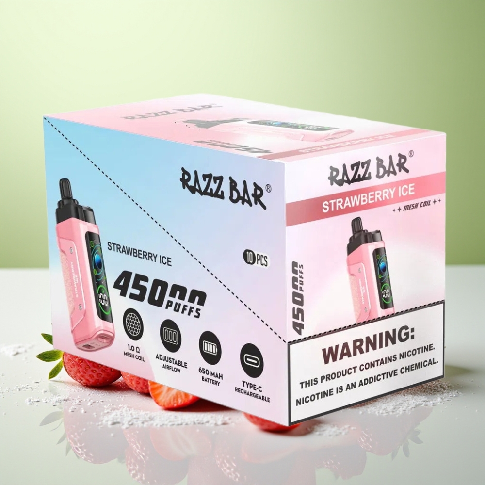 Razz Bar 45000 نفخة ستوربيري آيس بخاخ فايب قابل لإعادة الشحن ببطارية 650 مللي أمبير