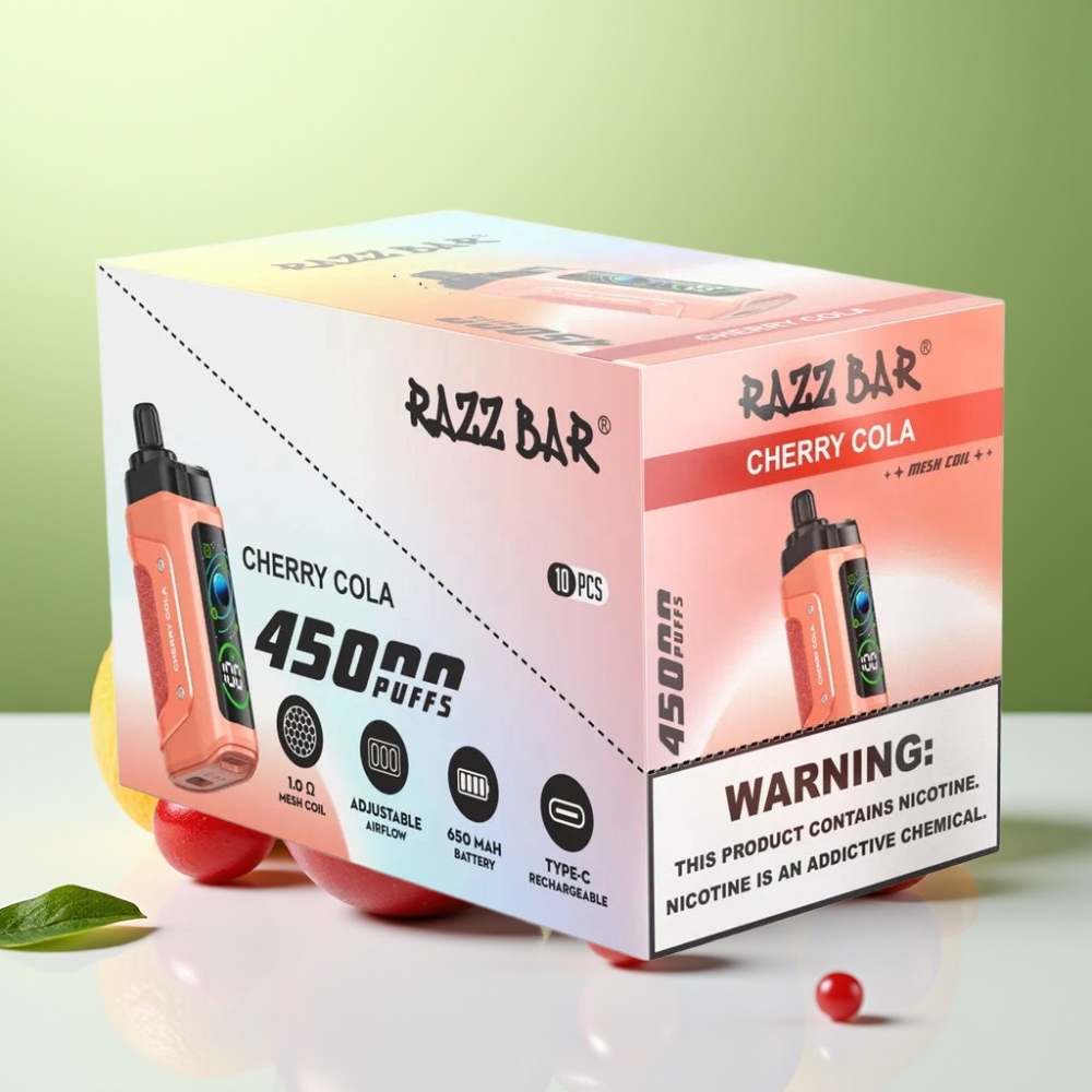 Razz Bar 45000 نفخة فيب قابلة لإعادة الشحن بنكهة الكرز كولا مع ملف شبكي 1.0 أوم