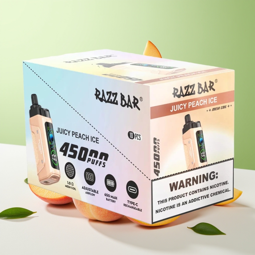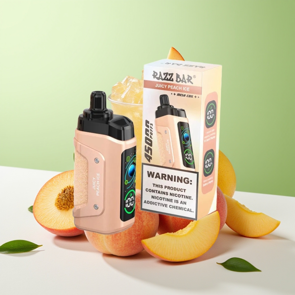 Razz Bar 45000 نفخة فيب قابل لإعادة الشحن بنكهة الخوخ المثلج والعنب