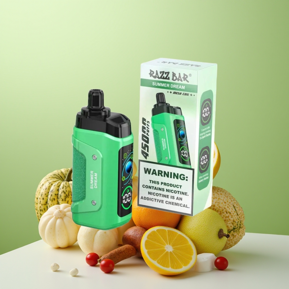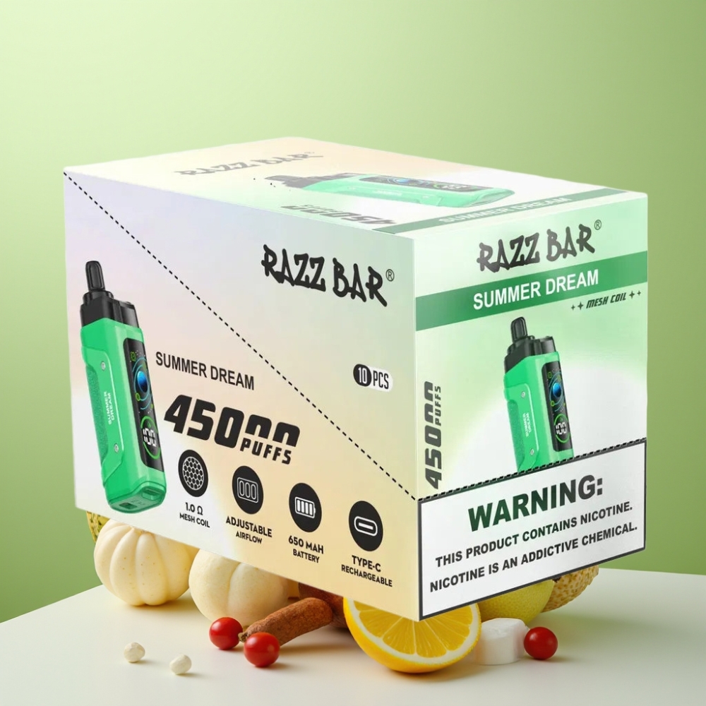 Razz Bar 45000 نفخة فيب قابل لإعادة الشحن بنكهة حلم صيفي مع ملف شبكي 1.0 أوم