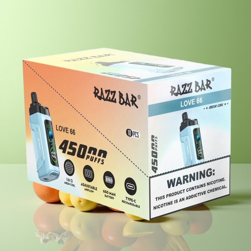 Razz Bar 45000 نفخة فيب قابل لإعادة الشحن نوع-C نكهة الحب 66