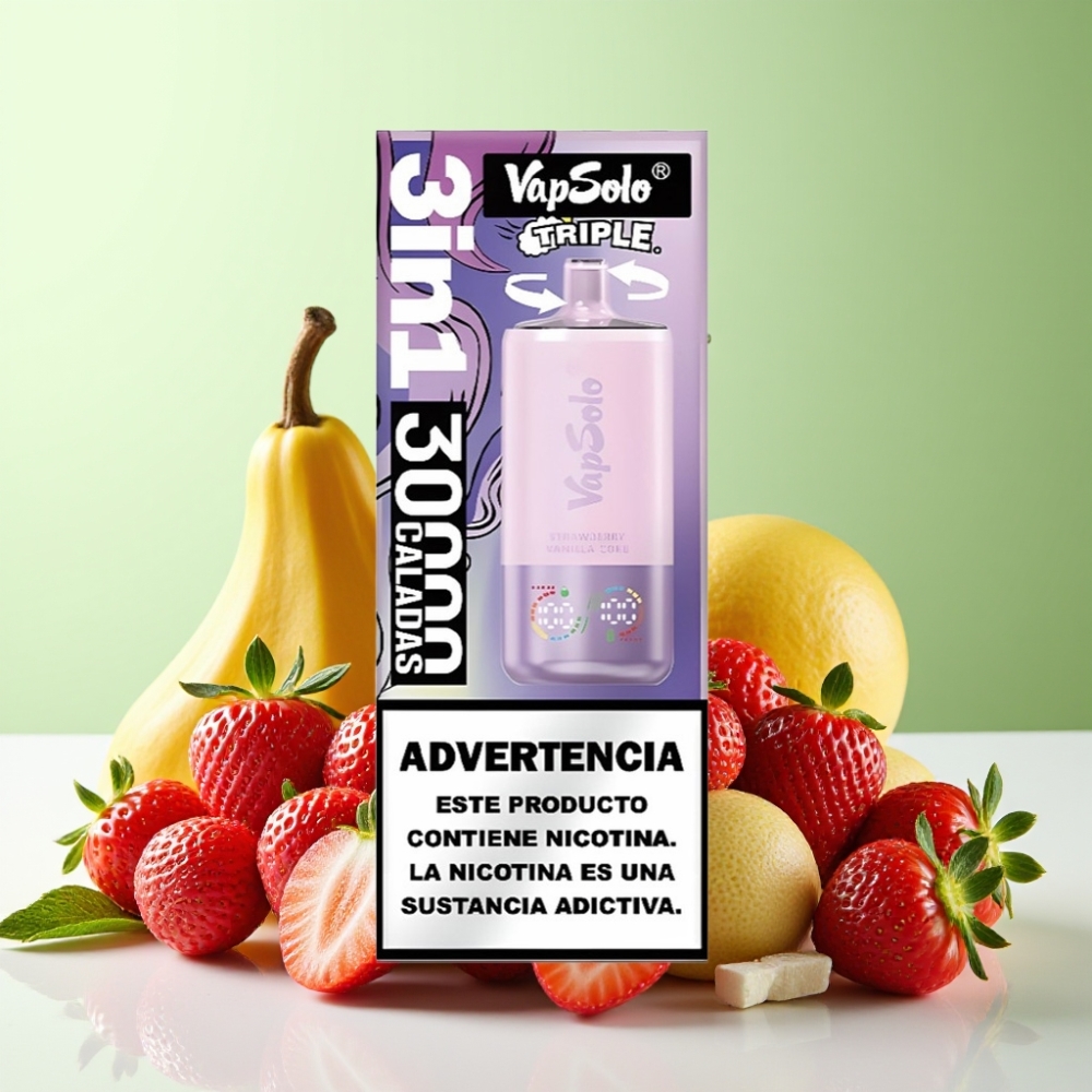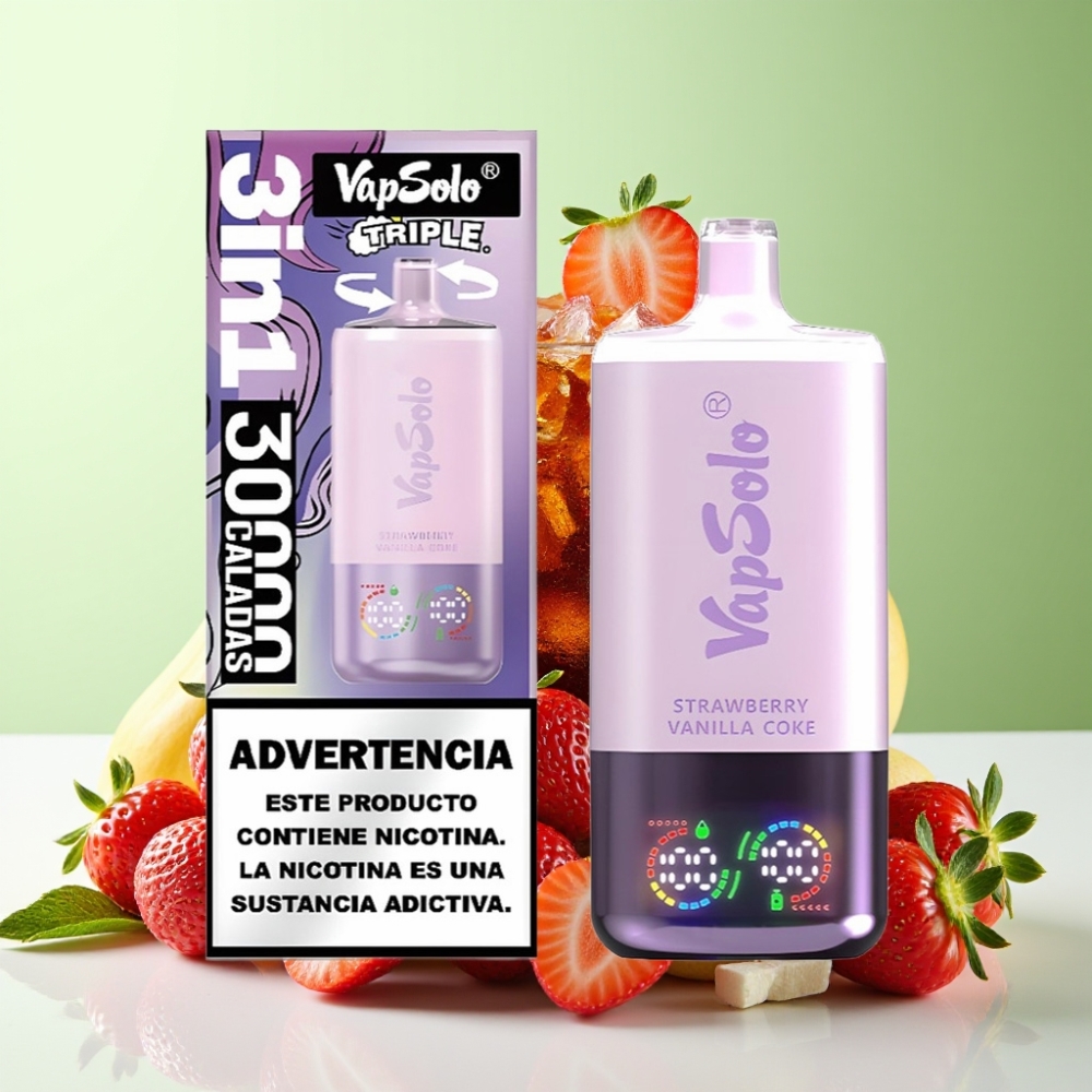 Vapsolo Triple 30000 Puffs تبغ إلكتروني بنكهة الفراولة فانيليا كولا بخزان 40 مل